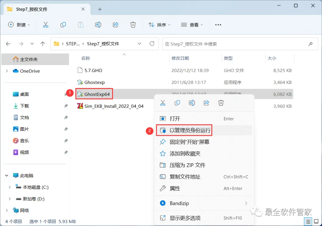 23、找到【GhostExp64】应用程序,右键选择【以管理员身份运行】它
