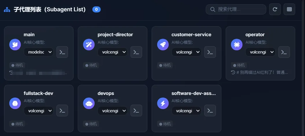 能看到当前有哪些子代理在跑,每个在用什么模型,处理什么任务。比原来去翻日志方便多了。