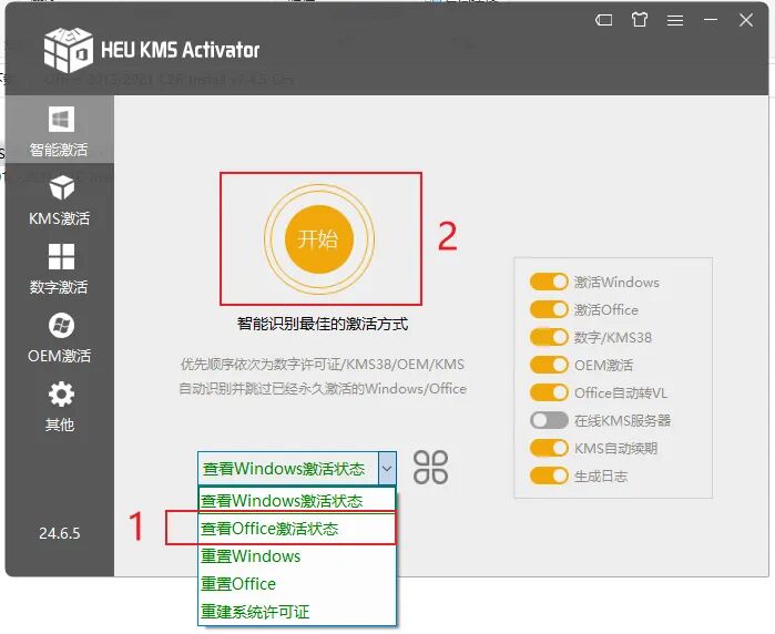 微软office单文件安装.单个word,ppt,excel安装微软office单文件安装1.打开软件Office-2013-2021-C2R-Install-7.4.5-Full-CN.exe2.安装完成,打开软件HEU_KMS_Activator_v24.6.5.exe3.激活成功,打开办公软件即可使用免费获取软件,关注公众号好赞友。回复:ppt即可获得,