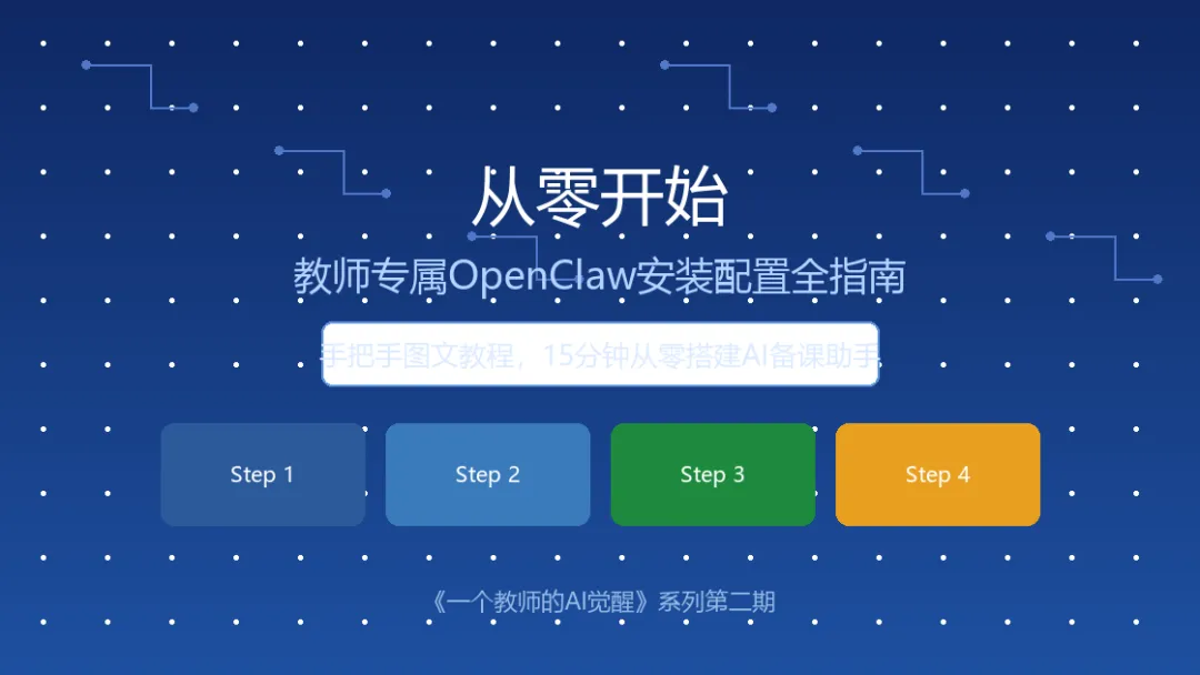 📋 导语 •本文是《一个教师的AI觉醒》续篇。 •上期我们聊了"为什么用AI",很多老师问我:你说的OpenClaw到底怎么装? •这一期,手把手教大家从零安装配置,包含所有步骤截图说明。 •零基础也能跟得上。 |