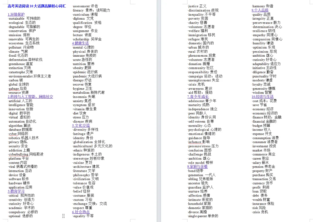 ·pressure/stress压力·confusion困惑·challenge挑战·ambition雄心·role model榜样