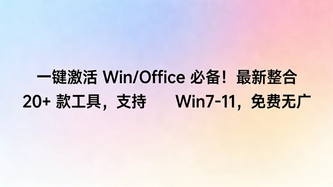 简介这是一款集成20余款电脑系统激活工具的整合包,支持Windows 7至11系统及Office软件。工具界面简洁、无广告,收录的激活软件均为最新可用版本,免费使用,适合装机必备。