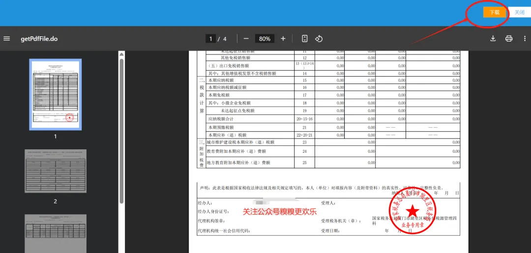 第四步:点击下载按钮,即可导出带有税务局印章的增值税申报表。