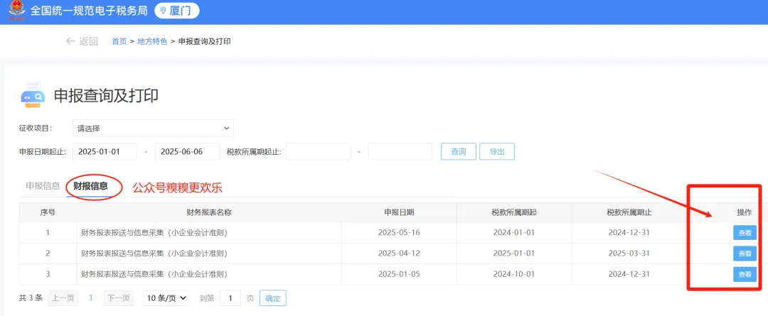 第三步:在查询结果中找到需要的申报表,点击 “查看”,会显示 PDF 格式的申报表。