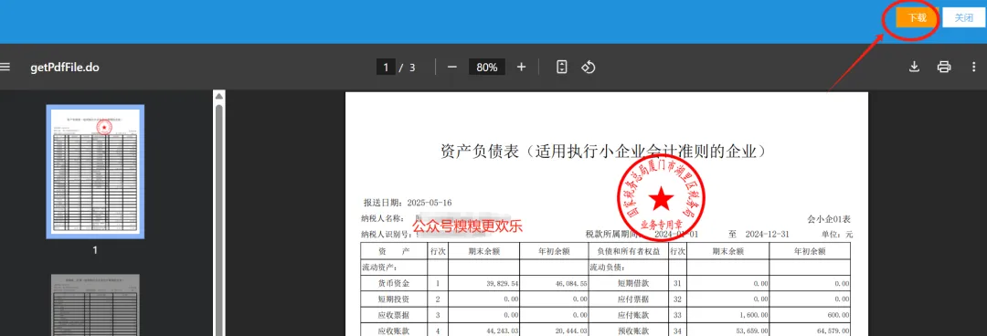 第四步:点击下载,即可获取带有税务局印章的财务报表。