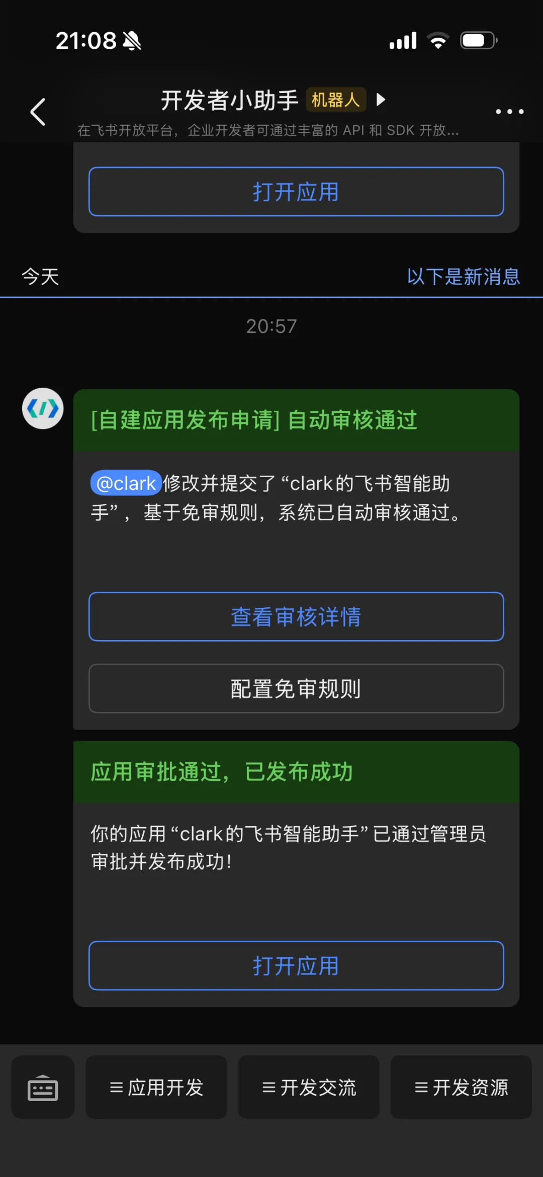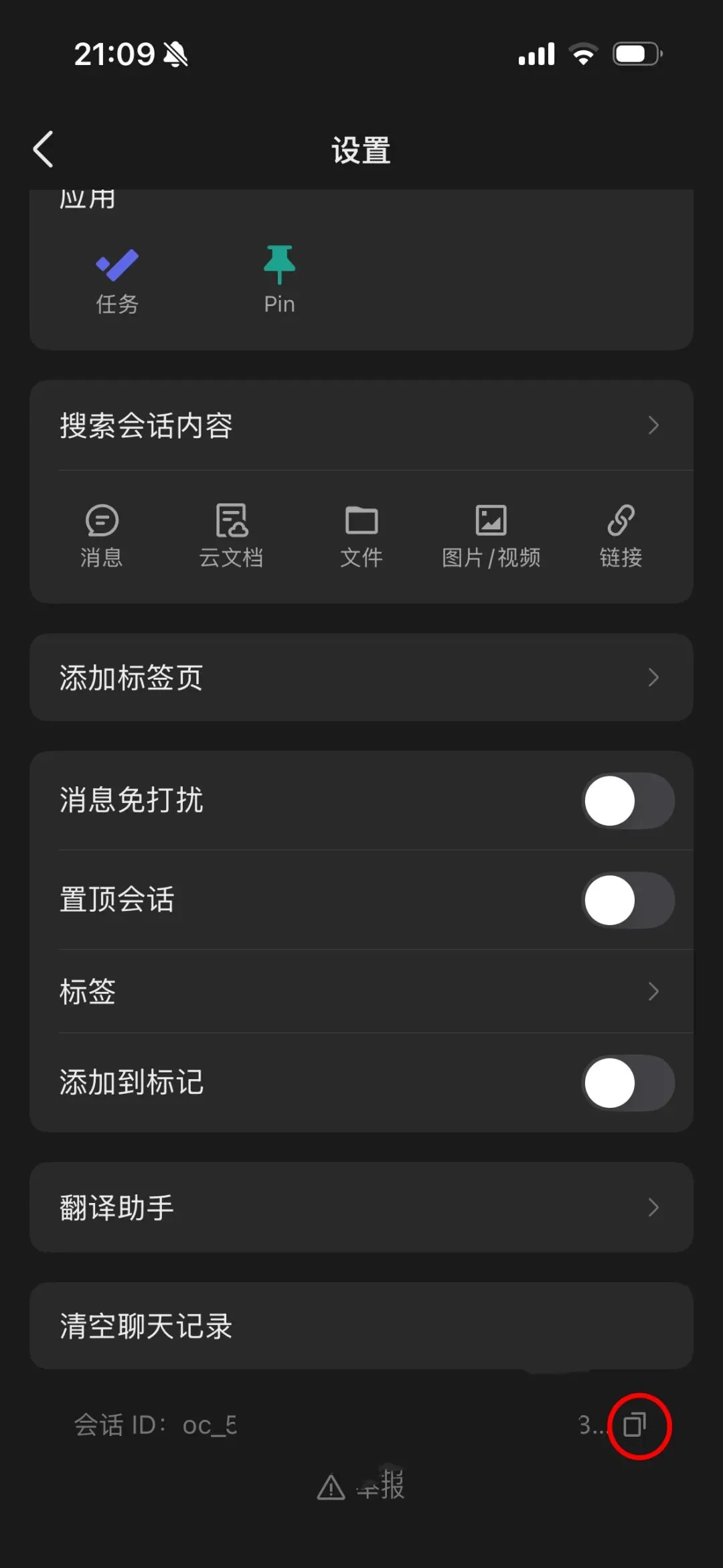 方式一:通过飞书的开发小助手点开对应,复制oc_id给龙虾进行聊天对话。