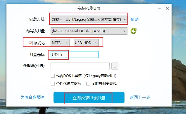 5.选择好方案后,点击“立即安装到 U 盘”即可开始制作。根据设备速度的不同,大概需要几分钟的时间。