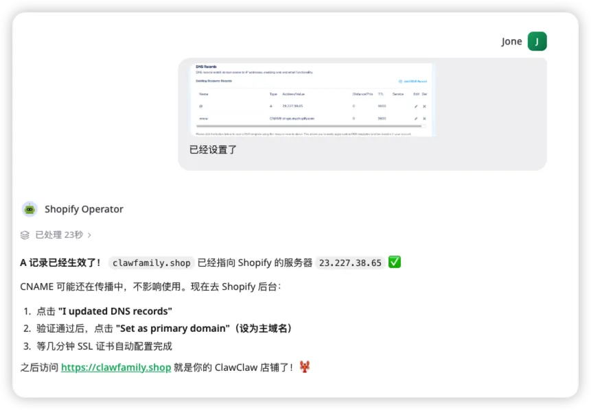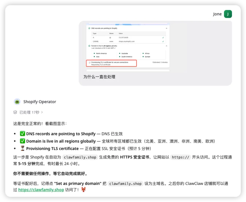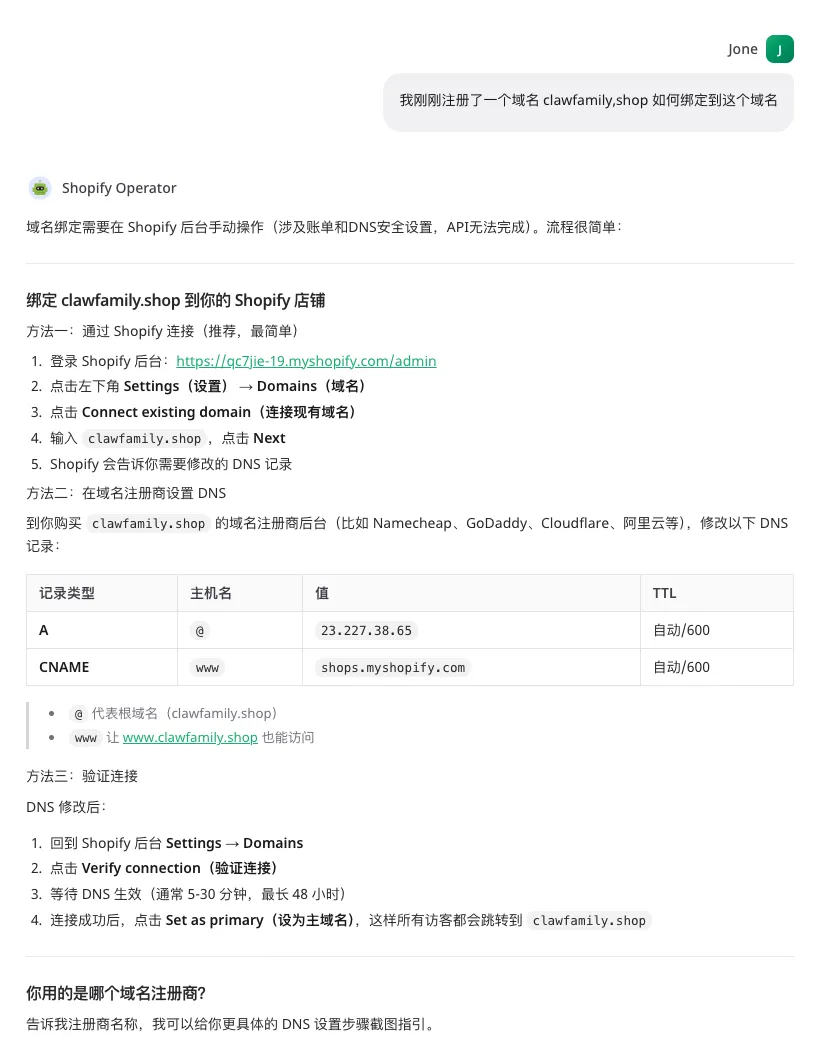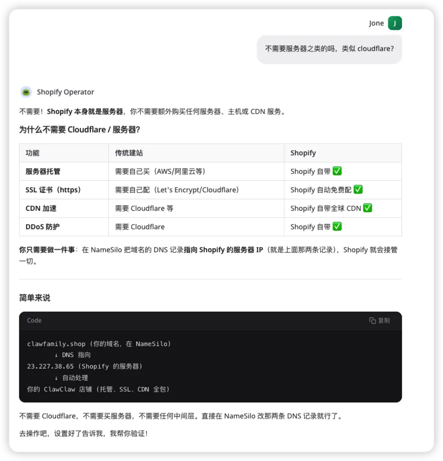 既然是做跨境电商,那当然全程是和上一步介绍的 Shopify Operator 沟通了。