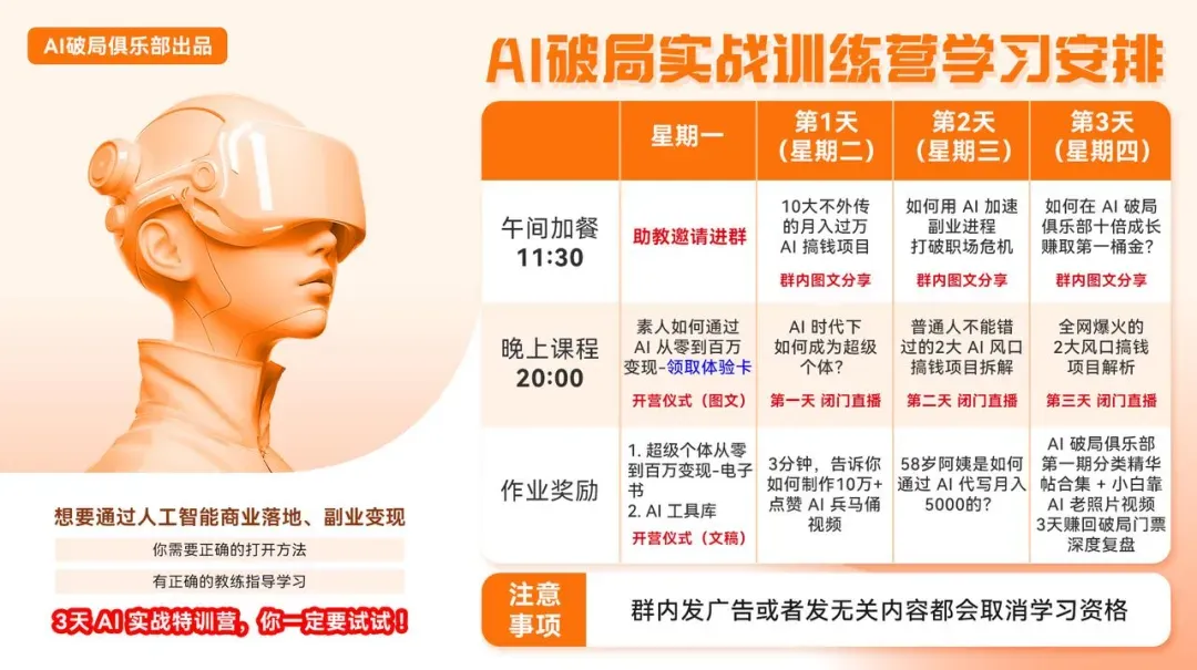 3、AI 学习 + AI 副业项目训练营,扫码免费学。