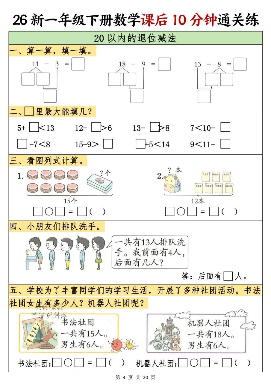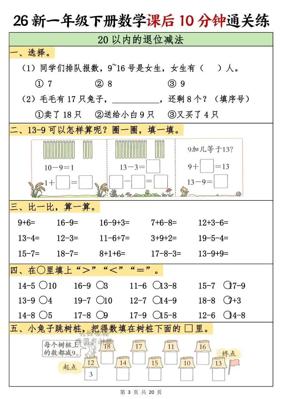 夜雨聆风 > > 办公文件 > 一年级下册数学|课后10分钟通天练(可下载打印)