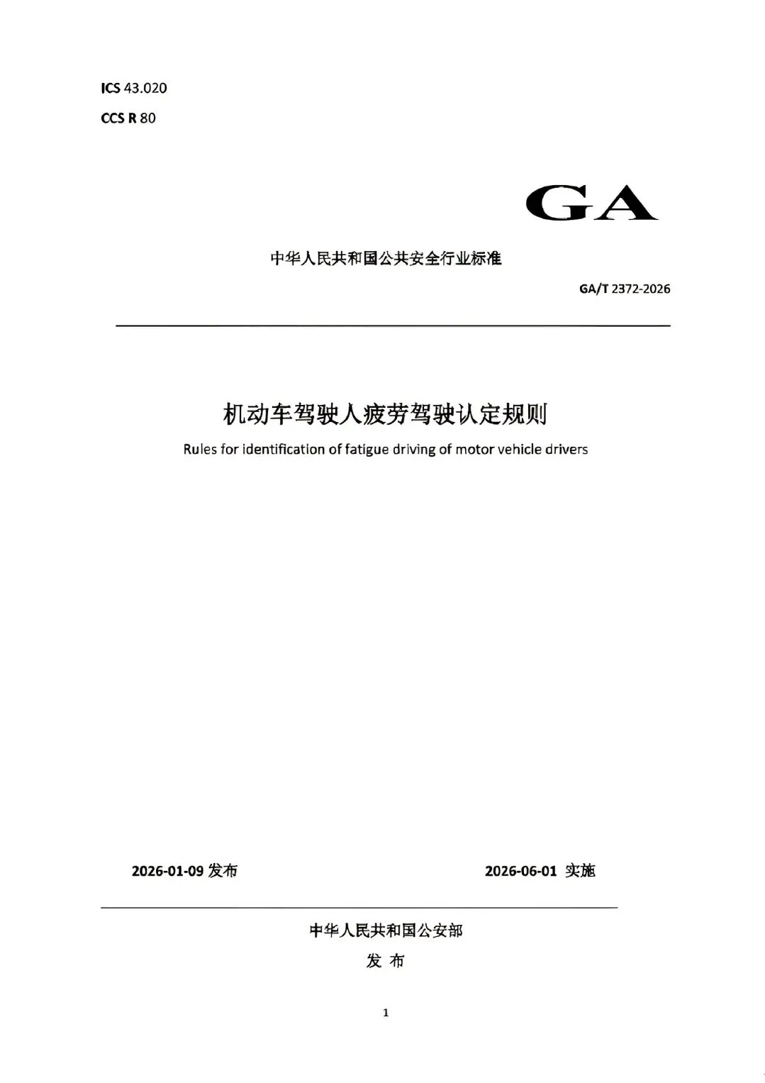 公安部刚刚发布并将于2026年6月1日实施的新行业标准《GA/T 2372-2026 机动车驾驶人疲劳驾驶认定规则》,带来了重大变化!这不仅是一份技术文件,更是未来事故调查的“标尺”。它与我们过去的认知有何不同?关键看三点: