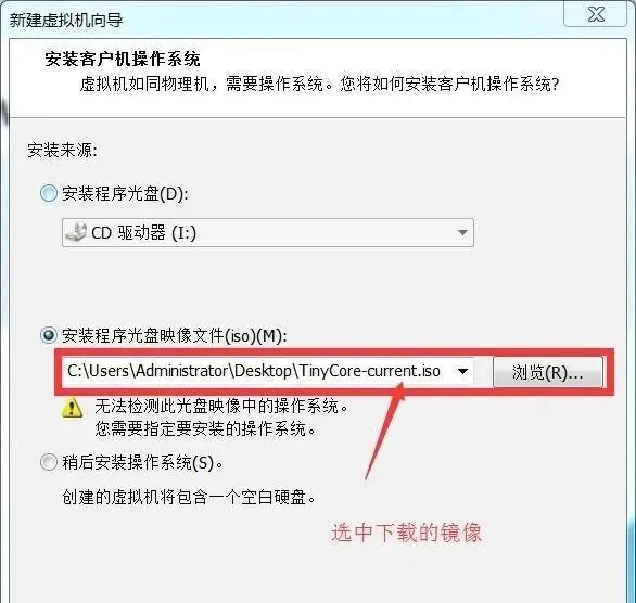 2.打开你们的虚拟机,选择下载好的Tiny Core镜像文件。