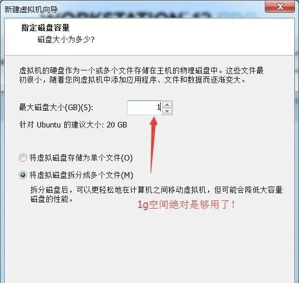 4.开始设置磁盘的大小,大家给个1GB的空间绝对是够了!