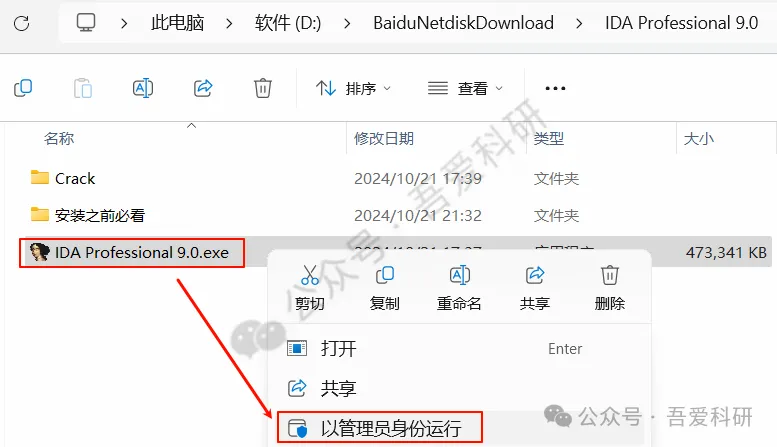 2.选中“IDA Professional 9.0.exe”右键以管理员身份运行