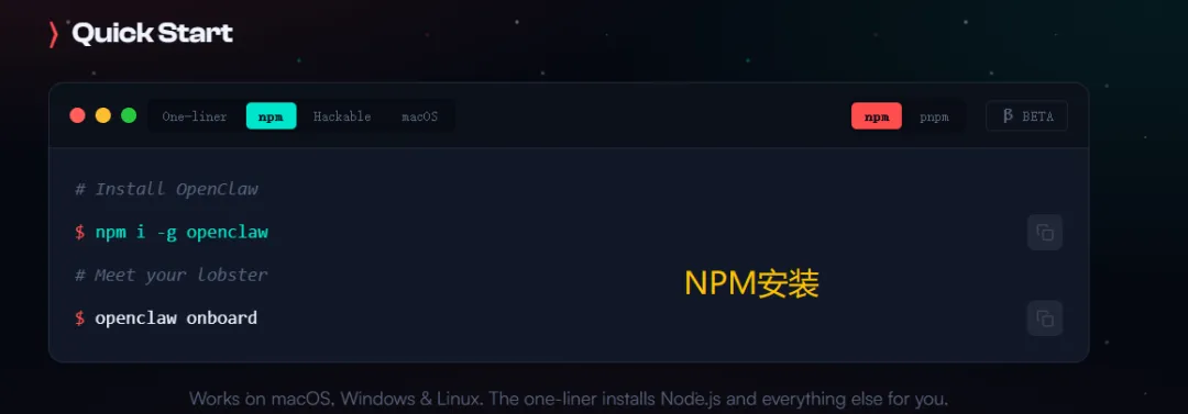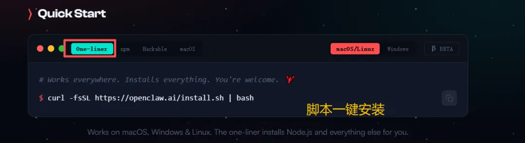 OpenClaw提供两种安装方式,分别为脚本一键安装和npm安装:
