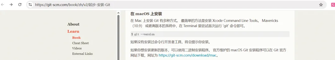 根据官网说明,MAC系统10.9版本以上自带git工具,尝试了一下确实有git命令,所以暂时省略了,如果没有的话可以按照git官网提示安装。