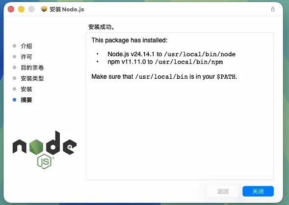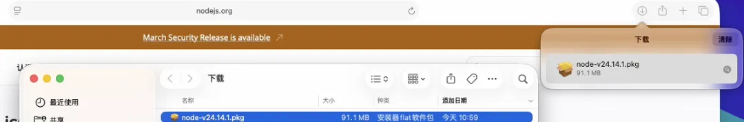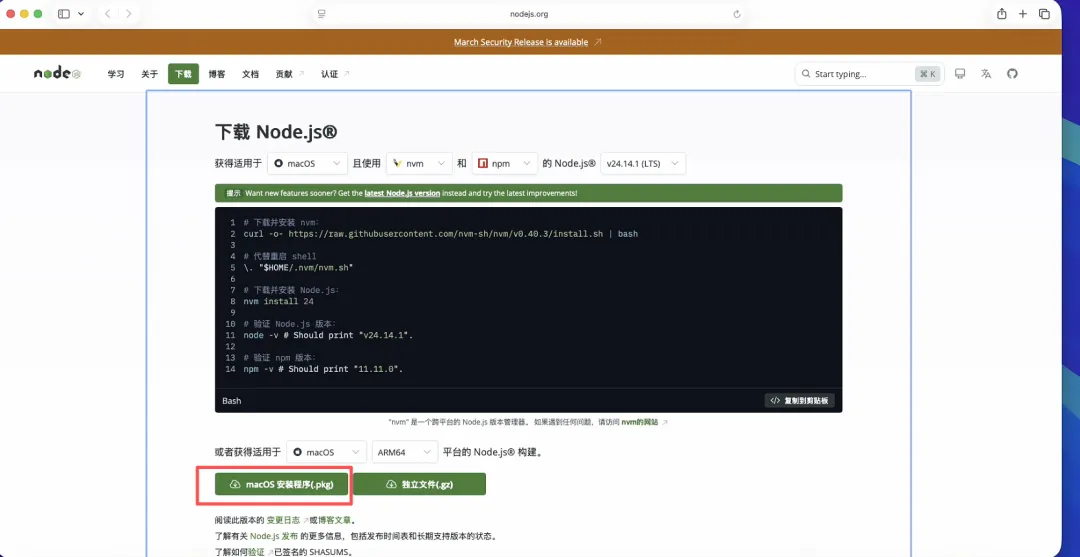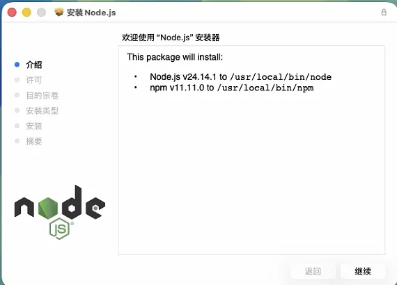 下载完成后点击打开安装程序node-v24.14.1.pkg: