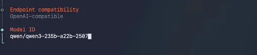 填写模型id(这里我们使用的是千问的qwen3-235b-a22b-2507模型):
