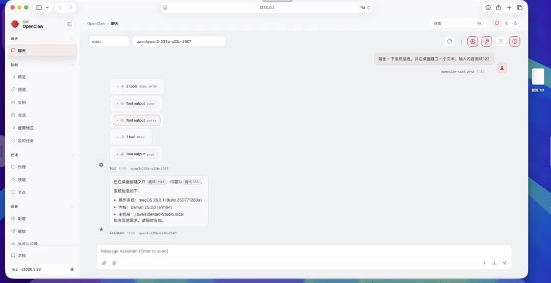3.测试openclaw