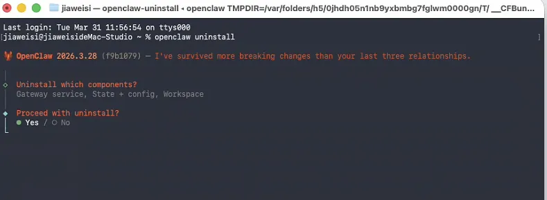 四、卸载OpenClaw
