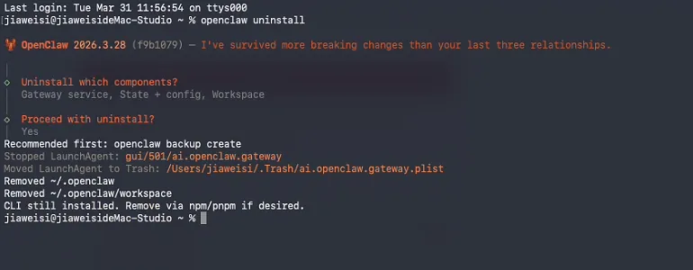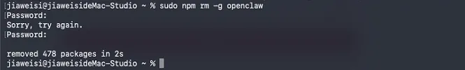卸载openclaw完成: