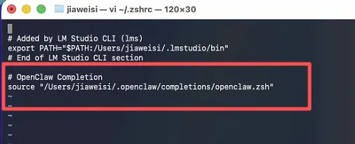 vi ~/.zshrc删除openclaw部分后保存即可。