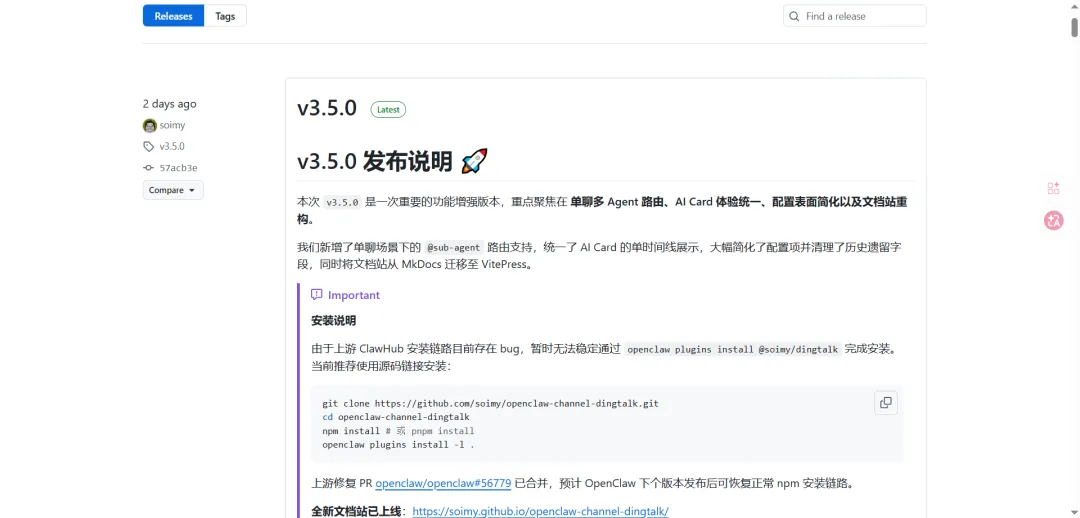 文档地址:https://soimy.github.io/openclaw-channel-dingtalk/