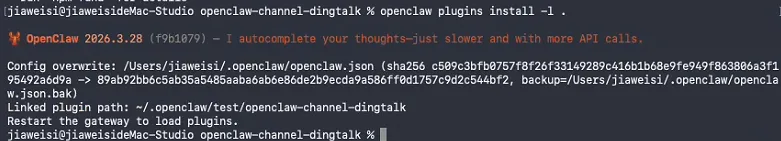 .):openclaw plugins install -l .