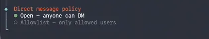 私信模式,这里因为我们是测试所以选择open模式,如果实际部署需要设置白名单: