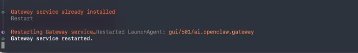 其他已经配置选项直接跳过,最后选择重启网关: