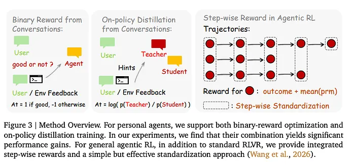 这是第一个在相同循环中统一个人智能体个性化和通用智能体训练的系统,从相同的下一状态信号,跨异构交互类型。对话、终端、GUI、代码仓库、工具调用;它们都只是具有不同转换函数的不同 MDP。训练信号是通用的。