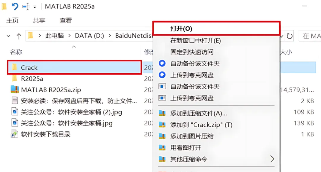 1、下载Matlab R2025a软件安装包到电脑上,右键选择【解压到当前文件夹】。