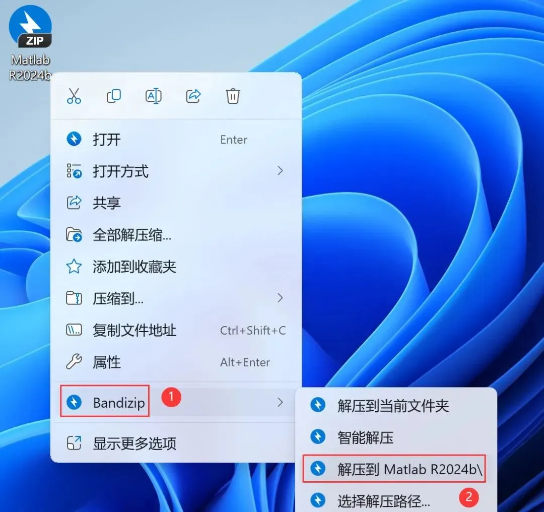 1、下载Matlab R2024b软件安装包到电脑上,右键选择【解压到Matlab R2024b\】
