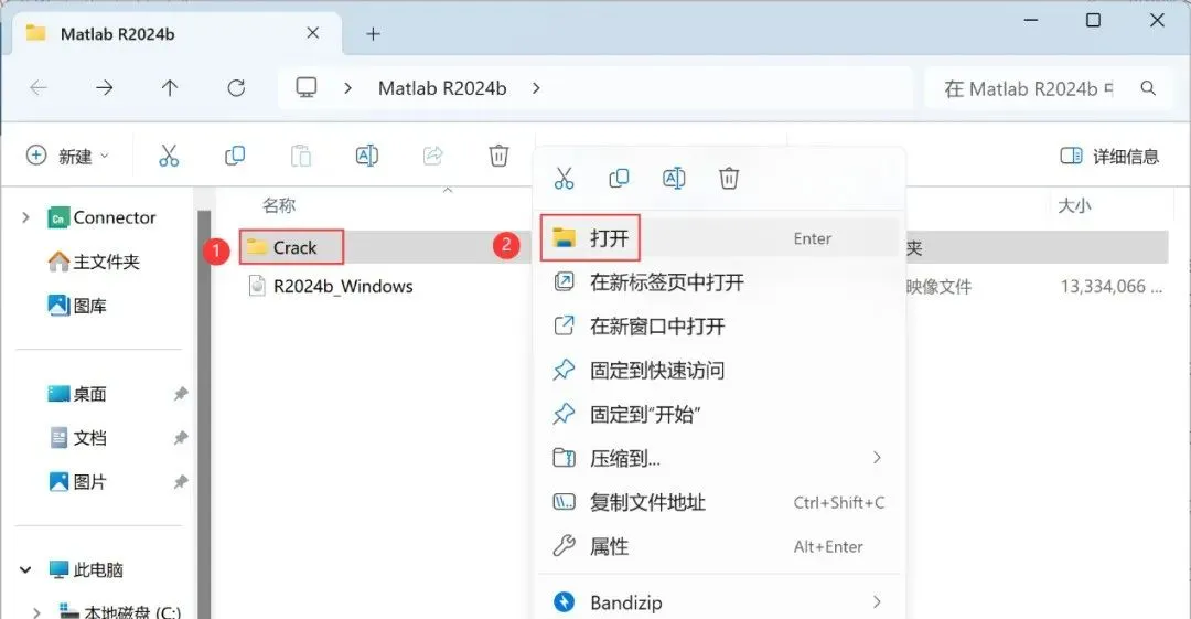 14、回到Matlab R2024b文件夹,找到【Crack】文件夹,右键【打开】它