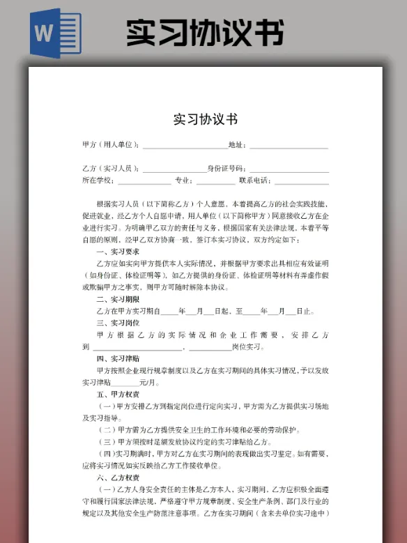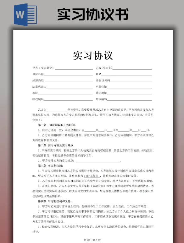 【2026】大学生实习协议书模板(word电子版可编辑可打印)【免费保存下载】今天分享的是大学生实习协议书模板合集下载后办公软件可直接编辑修改打印网盘打包下载链接👇https://pan.quark.cn/s/b09af152985e#实习协议合同模板 #大四实习协议书以下为部分模板展示以上仅为部分预览图完整电子版可编辑手机点击阅读原文直接保存简历模板点击左下方“阅读原文”,进入下载页面