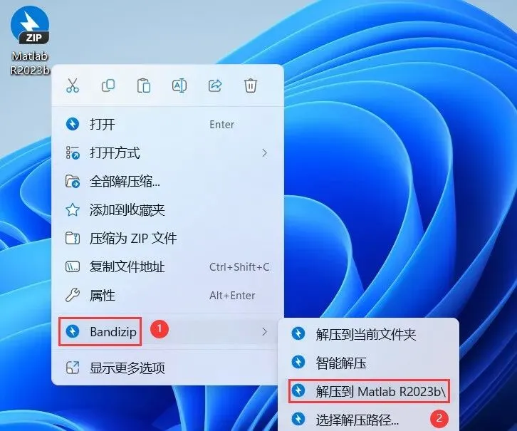 1、下载Matlab R2023b软件安装包到电脑上,右键选择【解压到Matlab R2023b\】