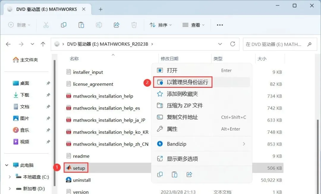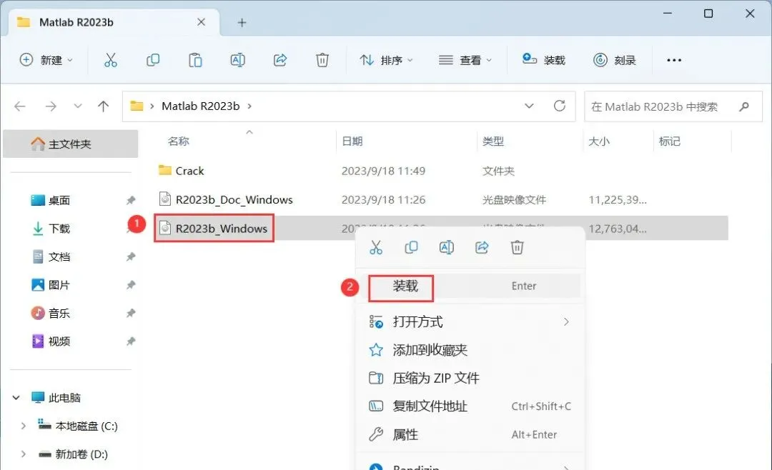 3、找到【R2023b_Windows】文件,右键点击【装载】