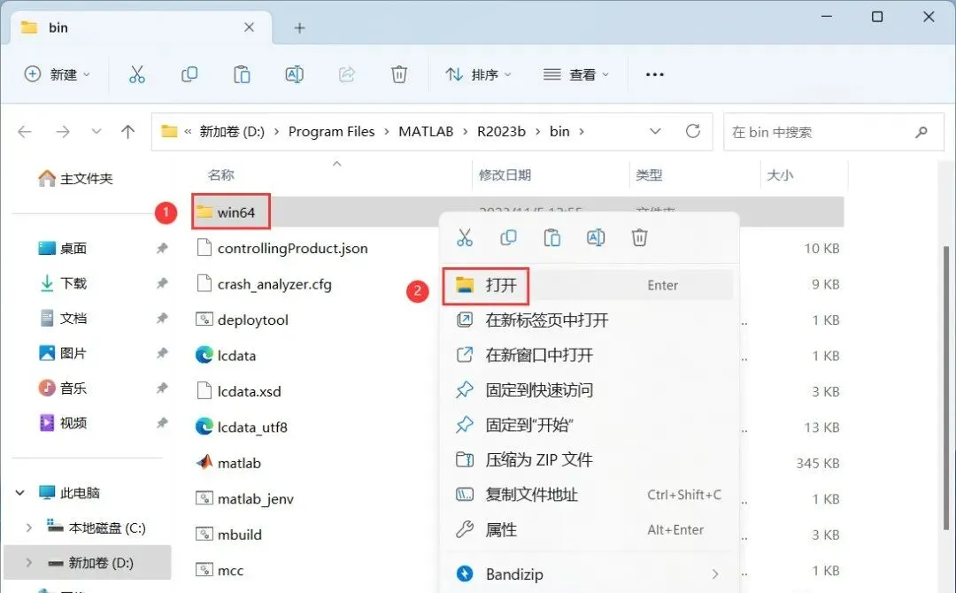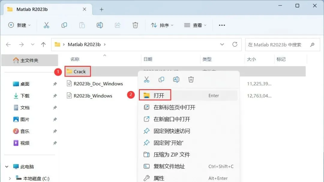 17、回到Matlab R2023b文件夹,找到【Crack】文件夹,右键【打开】它