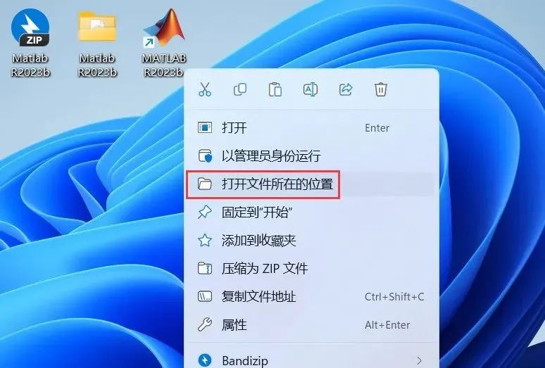 19、回到桌面,右键桌面上的【Matlab R2023b软件图标】,点击【打开文件所在的位置】