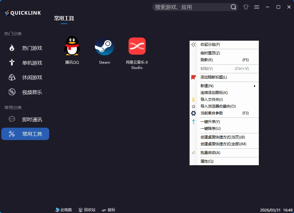 QuickLink图标启动器绿色版,这是一个轻量级的程序快捷气动工具,不仅启动快,还可以将图标进行分类管理,减轻桌面的负担,告别凌乱的桌面,让你眼睛享受舒适感!