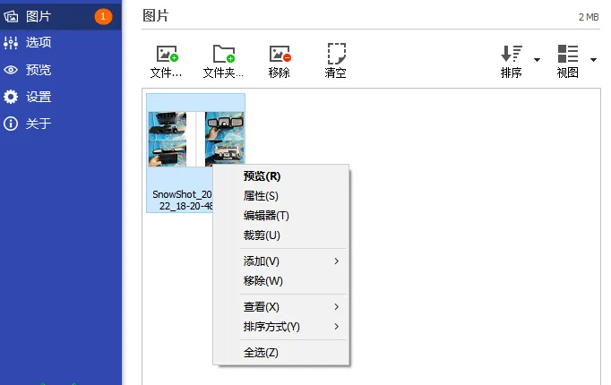 批量调整图片工具Light Image Resizer,支持图片批量添加水印,批量转换图像格式、调整图片大小、缩放裁剪,图片格式转换、重命名,排序;添加效果,旋转,自定义元数据,优化压缩图片,移除图片背景。