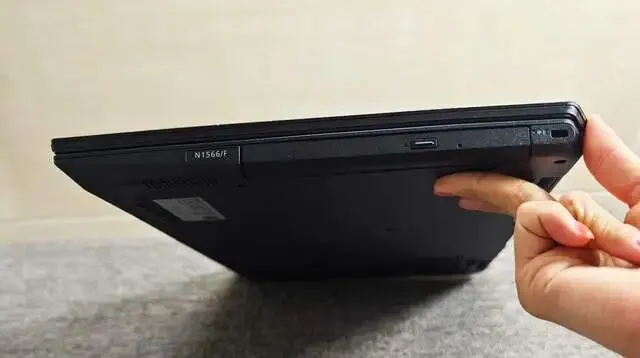 外设光驱很少见。来到机身中框,CN15的厚度明显,主要是键盘面的布局很厚,上面容纳了丰富的拓展接口。中框左侧有锁孔、全功能tpec口、标准usb口和标准hdmi口;中框右侧有突出的光驱,设计了醒目的开关按钮。在机器开机状态,点按按钮弹出光驱仓位,放入光盘后,可以正常读写内容。光驱在十几年前很风靡,读写文档,播放音视频文件等,很便捷。但自从优盘出来后,比光盘更加好用,慢慢的,笔记本电脑上的光驱设计就取消了。