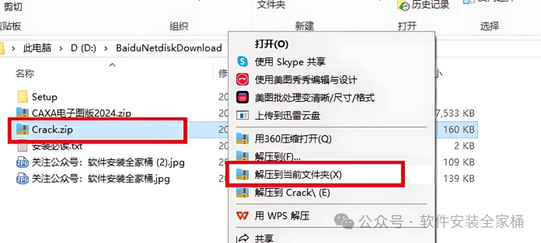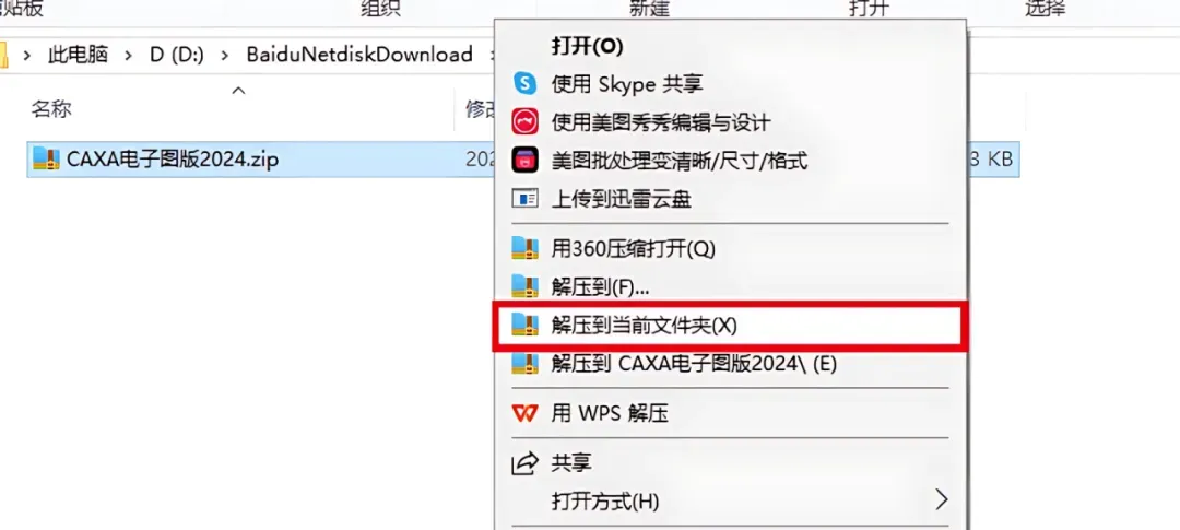 1.打开下载的软件安装包,鼠标右击压缩包选择【解压到当前文件夹】。