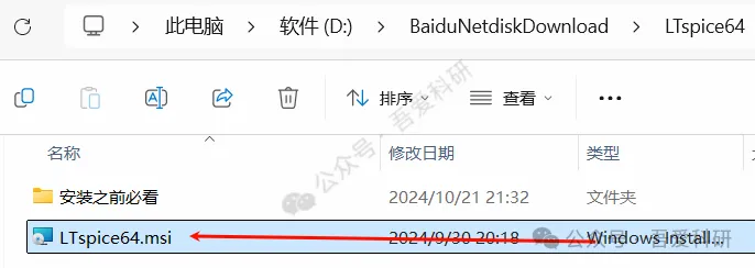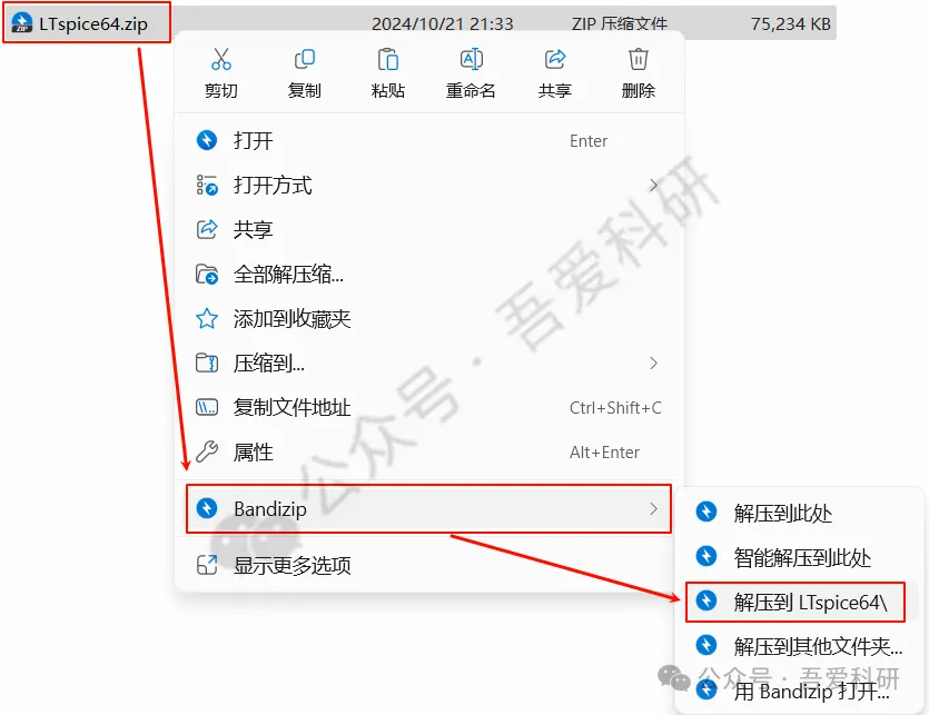 1.选中下载好的安装包,右键解压到“LTspice64”文件夹