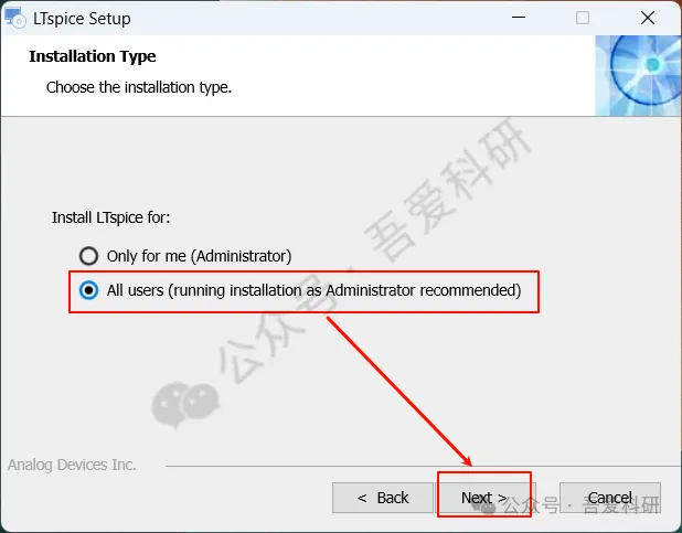 6.点击“Allusers(running installation as Administratorrecommended”,点击“Next”