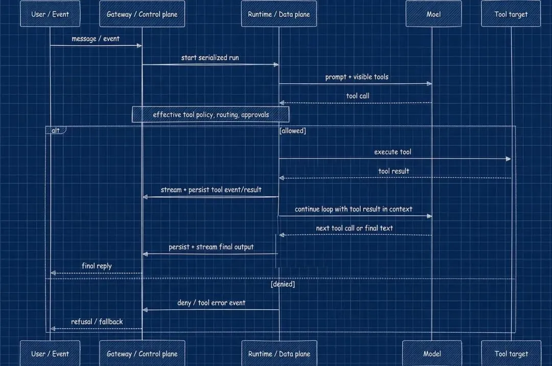 一个关键判断:仅靠 system prompt 说「不许调某工具」≠ 实现了零信任。Prompt 层面的禁令可以被注入攻击绕过,必须在 Gateway 侧做带外的物理拦截。