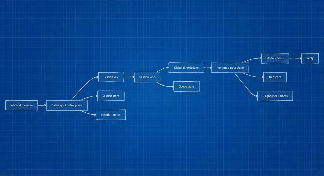 这个分法的好处在于 Runtime 可以水平扩缩而不引入分裂真实本源——同一个会话键在任意时刻只被一个 Gateway 实例持有路由。如果两个 Hub 同时持有同一个会话键,这本身就是一个架构级 Bug。