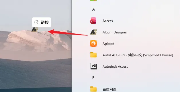 12.打开左下角的【开始菜单】,找到【Altium Designer】软件图标,往桌面拖动创建桌面快捷方式。