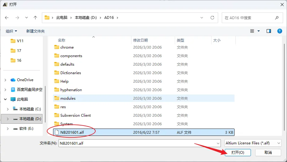 20.在软件的安装目录下找到【NB201601.alf】文件,然后点击【打开】。