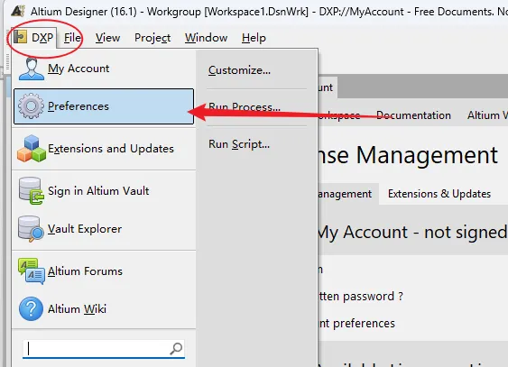 22.点击左上角的【DXP】,然后点击【Preferences】。